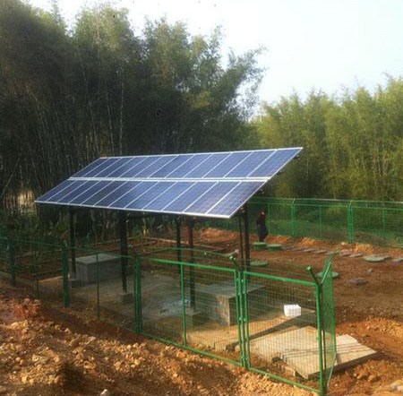 太陽(yáng)能一體化污水處理工藝是濰坊中僑環(huán)境工程有限公司針對(duì)農(nóng)村生活污水特性及建設(shè)、運(yùn)行、管理方面的特點(diǎn),引入太陽(yáng)能為能源,結(jié)合太陽(yáng)能光伏技術(shù),借鑒并改造傳統(tǒng)成熟污水處理工藝,使之適應(yīng)太陽(yáng)能特點(diǎn),強(qiáng)化氮、磷的處理,提高污水處理效率及處理深度,新型的全自動(dòng)的農(nóng)村生活污水處理新技術(shù)。太陽(yáng)能污水處理設(shè)備是由太陽(yáng)能光伏板、蓄電池組、曝氣系統(tǒng)、回流系統(tǒng)、微電腦控制系統(tǒng)和遠(yuǎn)程通訊系統(tǒng)等組成。通過(guò)太陽(yáng)能光伏板將太陽(yáng)能轉(zhuǎn)為電能,作為曝氣設(shè)施、回流設(shè)施的動(dòng)力,多余能量?jī)?chǔ)存于蓄電池中;根據(jù)優(yōu)化調(diào)試后的數(shù)據(jù),通過(guò)微電腦控制系統(tǒng)完成自動(dòng)化控制,自動(dòng)運(yùn)行曝氣設(shè)施、回流設(shè)施及攪拌設(shè)施。工程處理后水質(zhì)達(dá)到中華人民共和國(guó)《污水綜合排放標(biāo)準(zhǔn)》(GB8978—1996) 一級(jí)標(biāo)準(zhǔn)。