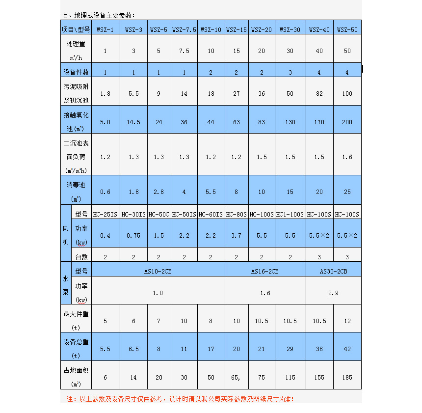 七、地埋式設備主要參數(shù):